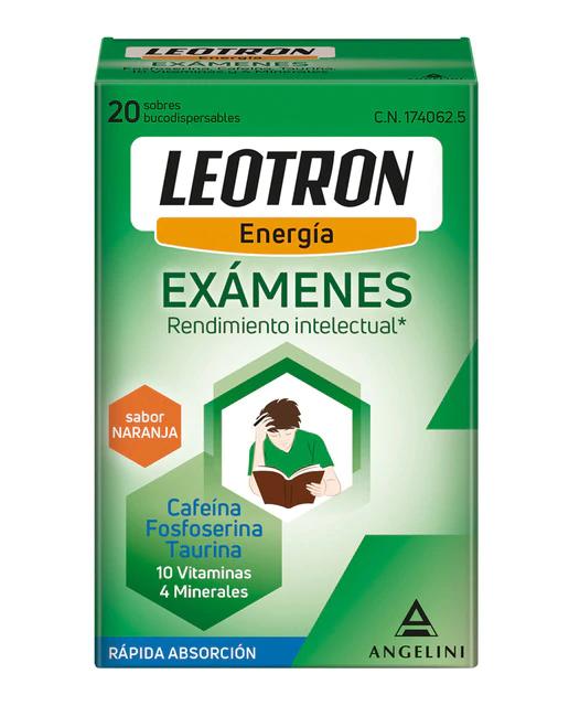 Leotron Exámenes es un complemento alimenticio diseñado para ayudar a concentrarse y aportar energía. Contribuye al rendimiento intelectual, disminuyendo la sensación de cansancio y fatiga. Este producto contiene fosfoserina, cafeína, taurina, 10 vitaminas y 4 minerales.